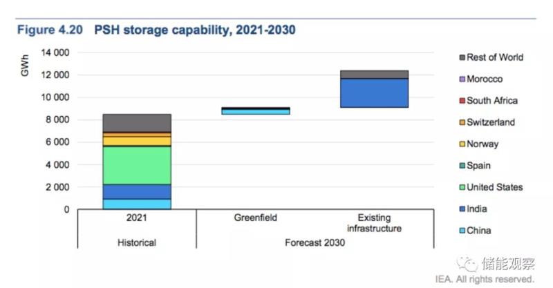 而對(duì)于PSH來說,現(xiàn)有的水庫(kù)電站和大壩可以提供機(jī)會(huì),以有效的成本實(shí)現(xiàn)長(zhǎng)期電力儲(chǔ)存。展望2030年,IEA預(yù)測(cè)在現(xiàn)有水庫(kù)上增加抽水蓄能將比新項(xiàng)目增加更多的儲(chǔ)存能力。
