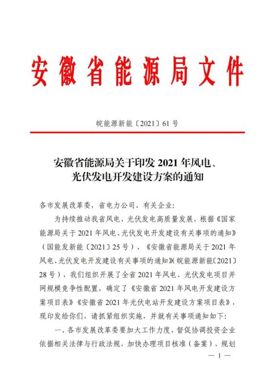 中國(guó)儲(chǔ)能網(wǎng)訊:12月6日,安徽省能源局印發(fā)《2021年風(fēng)電、光伏發(fā)電開發(fā)建設(shè)方案》,下發(fā)了6GW項(xiàng)目指標(biāo)。其中: