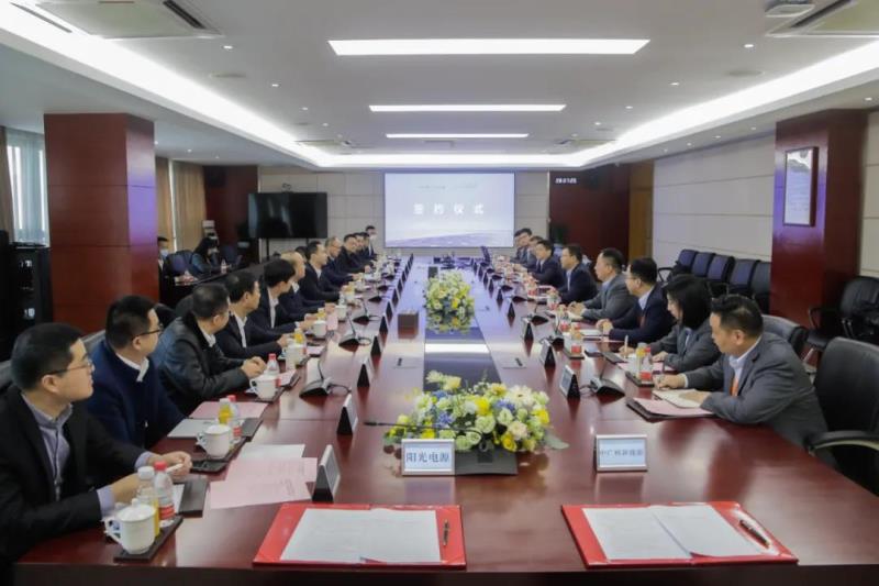 中國儲能網(wǎng)訊:12月14日,陽光電源與中廣核新能源在合肥簽署戰(zhàn)略合作協(xié)議,雙方將在光、風(fēng)、儲、電、氫等領(lǐng)域進(jìn)一步深化合作。中廣核新能源黨委委員、總會計師劉超,副總經(jīng)理鄭海明,科技公司總經(jīng)理陳勇,市場開發(fā)部副總經(jīng)理梁亮,山東、青海、安徽公司等領(lǐng)導(dǎo),陽光電源副董事長張許成,副總裁彭超才,陽光新能源副總裁孫偉,光儲、風(fēng)能、陽光新能源等業(yè)務(wù)負(fù)責(zé)人出席簽約儀式。