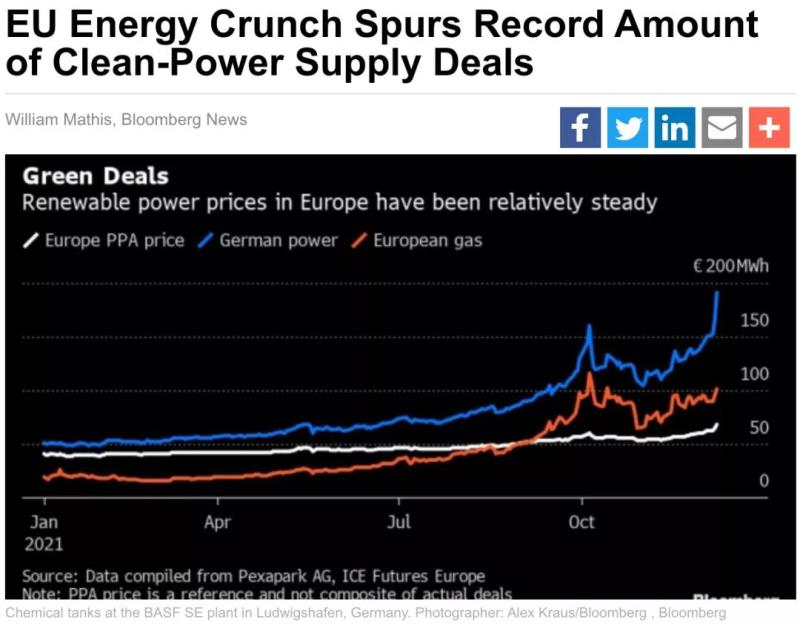 隨著疫情后經(jīng)濟(jì)的重新開放,歐洲正面臨能源危機(jī),在供應(yīng)跟不上的時(shí)候刺激需求。今年,天然氣和電力價(jià)格飆升,促使從化學(xué)品制造商巴斯夫SE到化肥生產(chǎn)商CF Industries Holdings Inc.等工業(yè)巨頭放慢甚至停止生產(chǎn)。這場(chǎng)危機(jī)似乎將持續(xù)下去——就在最近一周,德國(guó)和法國(guó)電價(jià)達(dá)到了新的紀(jì)錄。