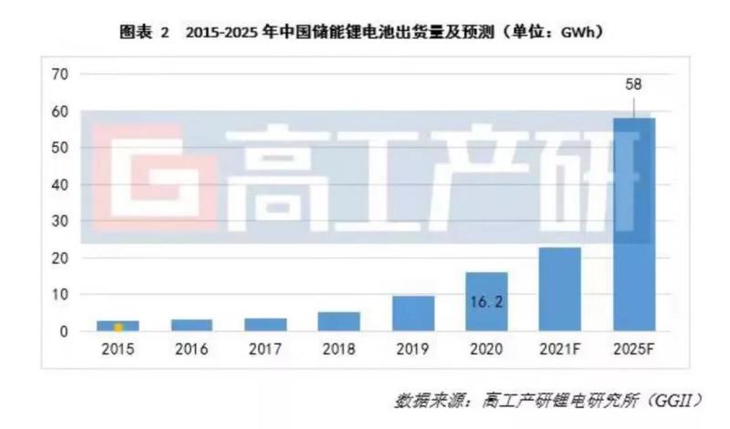 GGII預(yù)計(jì),2025年全球儲(chǔ)能電池出貨量將達(dá)416GWh,未來(lái)5年年復(fù)合增長(zhǎng)率約為72.8%;中國(guó)儲(chǔ)能鋰電池出貨量將達(dá)58GWh,市場(chǎng)規(guī)模超過(guò)550億元。其中,作為主要應(yīng)用領(lǐng)域的電力儲(chǔ)能鋰電池“十四五”累計(jì)出貨量將超60GWh。