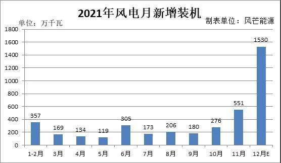 以12月也新增551萬千瓦(11月新增值)來算,2021年風電有望實現(xiàn)新增裝機30.21GW。