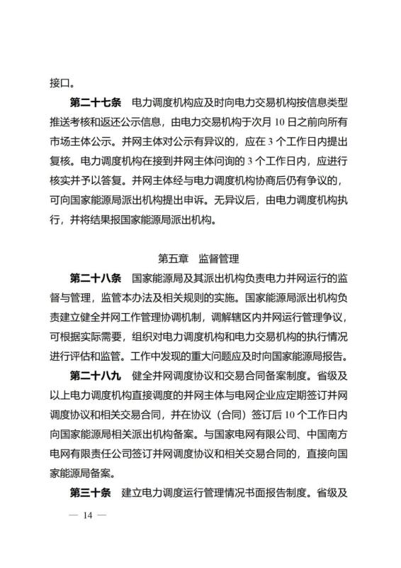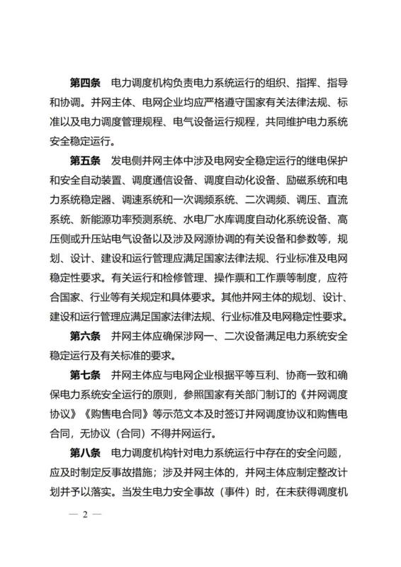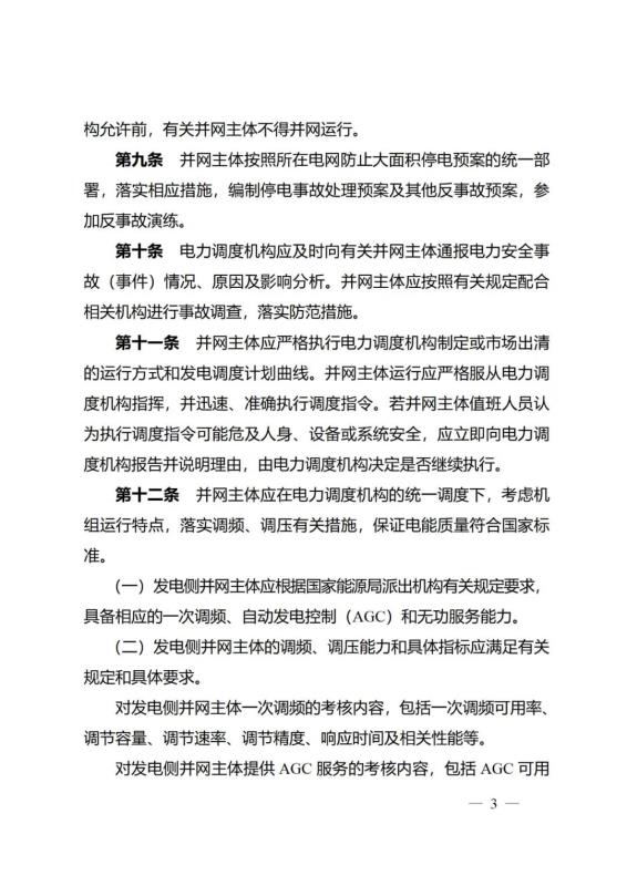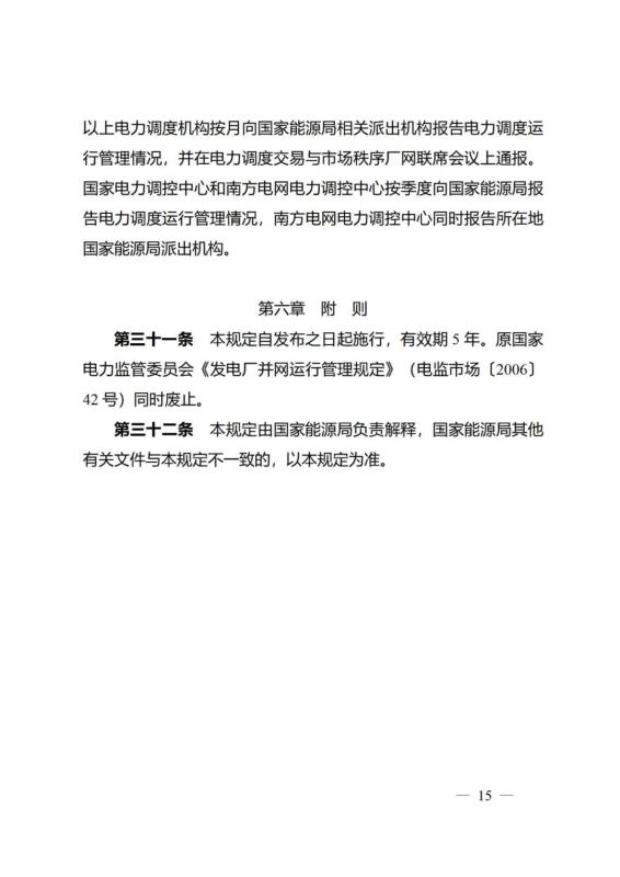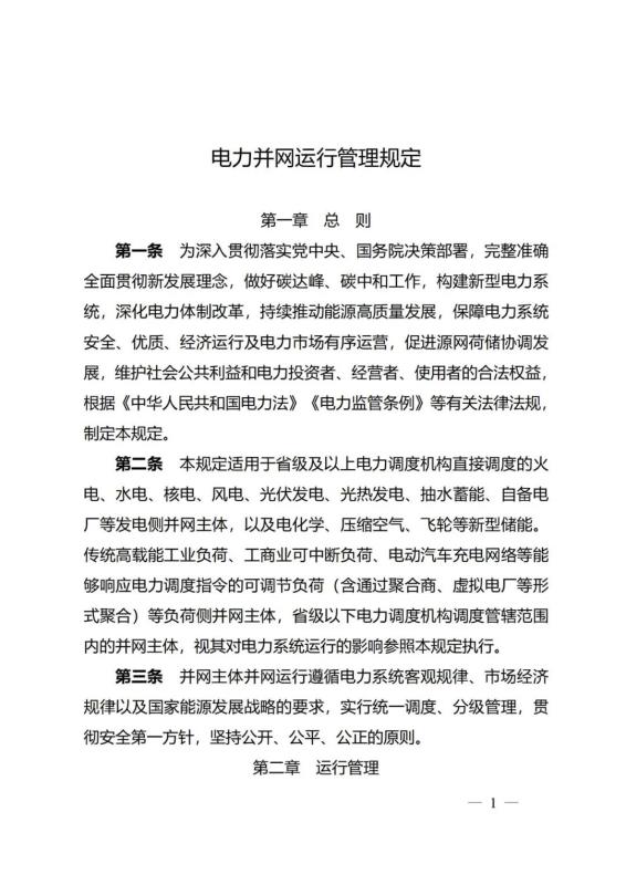 為深入貫徹落實黨中央、國務(wù)院決策部署,完整準確全面貫徹新發(fā)展理念,做好碳達峰、碳中和工作,推動構(gòu)建新型電力系統(tǒng),規(guī)范電力系統(tǒng)并網(wǎng)運行管理,國家能源局對《發(fā)電廠并網(wǎng)運行管理規(guī)定》(電監(jiān)市場〔2006〕42號)進行了修訂,并將名稱修改為《電力并網(wǎng)運行管理規(guī)定》(以下簡稱《規(guī)定》),現(xiàn)將《規(guī)定》印發(fā)給你們,請遵照執(zhí)行。