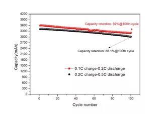 Test Conditions: 0.1C Charge,0.1C Discharge,between 3.0V – 4.3V, at 25oC