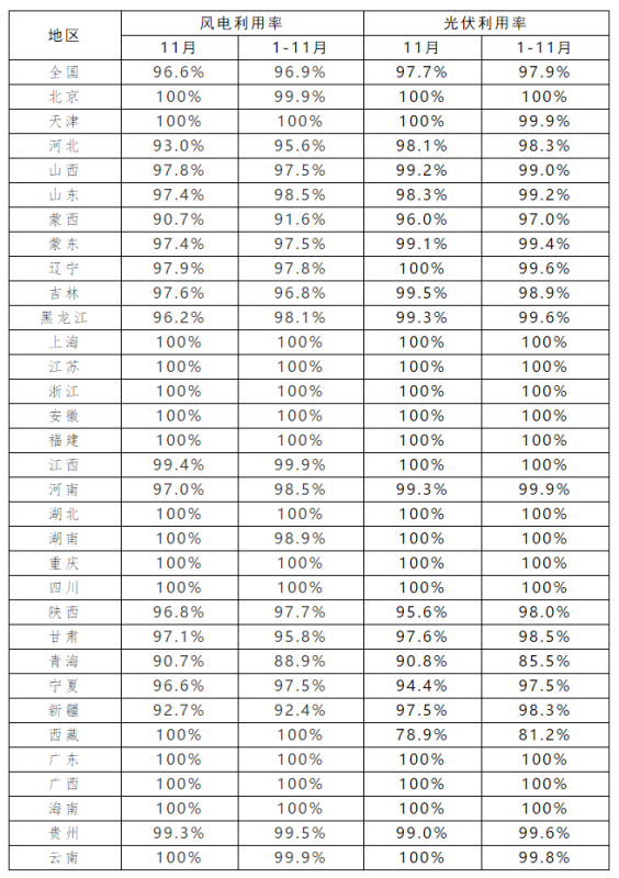 中國儲能網(wǎng)訊:2021年11月全國光伏利用率97.7%,1-11月全國光伏利用率97.9%。