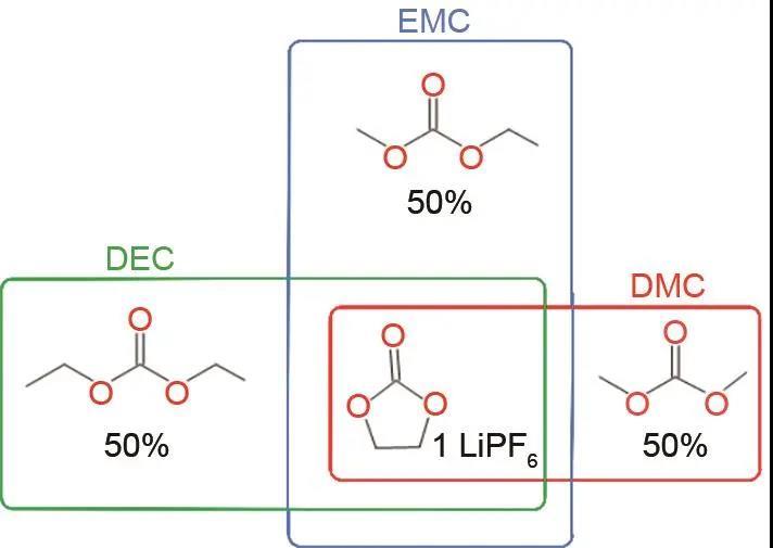 商用儲能電池的有機(jī)電解液成分一般為LiPF6與EC、DMC、DEC等有機(jī)溶劑的混合物,如圖5所示。這類電解液極易受到大于200 ℃的高溫影響而導(dǎo)致分解,產(chǎn)生CO、H2、碳?xì)浠衔锏纫兹家妆镔|(zhì),這是電芯安全的重大隱患(圖6)。水系電池使用水作為電解液溶劑,相比于易燃易爆的有機(jī)電解液,水系電解液在不過充的條件下一般不可燃,因此保證了電芯具有更高的安全性,但電池的工作電壓也較低(<2 V),導(dǎo)致水系電池能量密度遠(yuǎn)低于有機(jī)電解液的鋰離子電池。另外在過充情況下水會電解,釋放氧氣和氫氣,也有可能導(dǎo)致爆炸事故的發(fā)生。