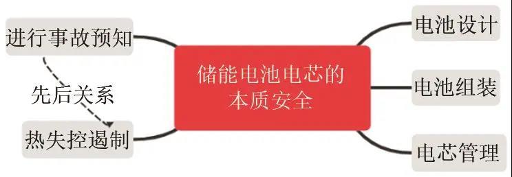 現(xiàn)有儲能電池的電芯本質(zhì)安全技術(shù)包括設(shè)計(jì)、組裝、事故預(yù)知、電芯管理、熱失控遏制等5部分,如圖4所示。