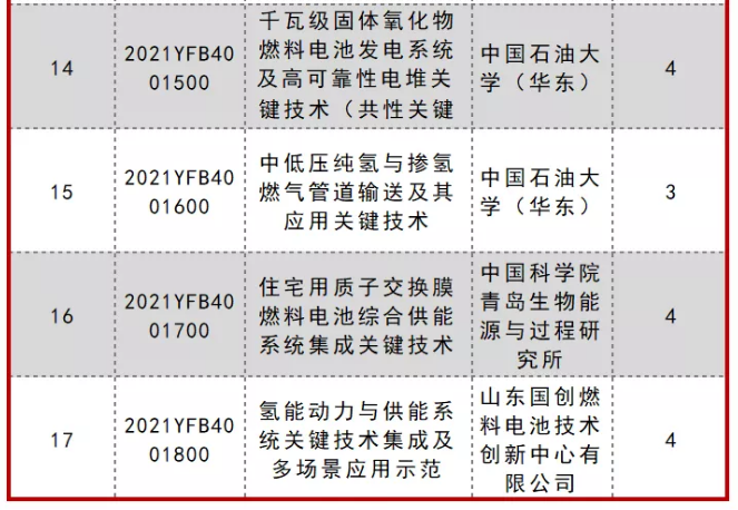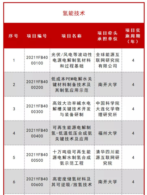 2021年度(十四五氫能技術(shù))國家重點研發(fā)計劃重點專項立項公示進(jìn)展