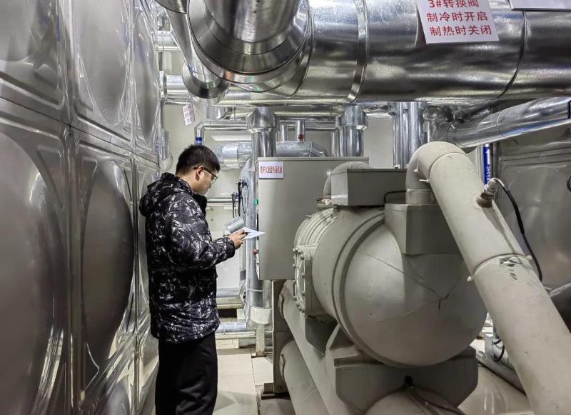 12月23日8時(shí)46分,華北電力大學(xué)綜合智慧能源管控中心大屏幕上顯示著剛切換的學(xué)校智慧生活熱水系統(tǒng)2號(hào)能源站用能數(shù)據(jù)信息,運(yùn)維人員正在做數(shù)據(jù)分析。