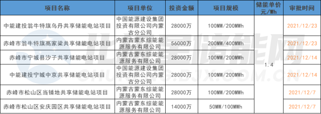 內(nèi)蒙古通過備案的六個(gè)共享儲能項(xiàng)目詳情如下: