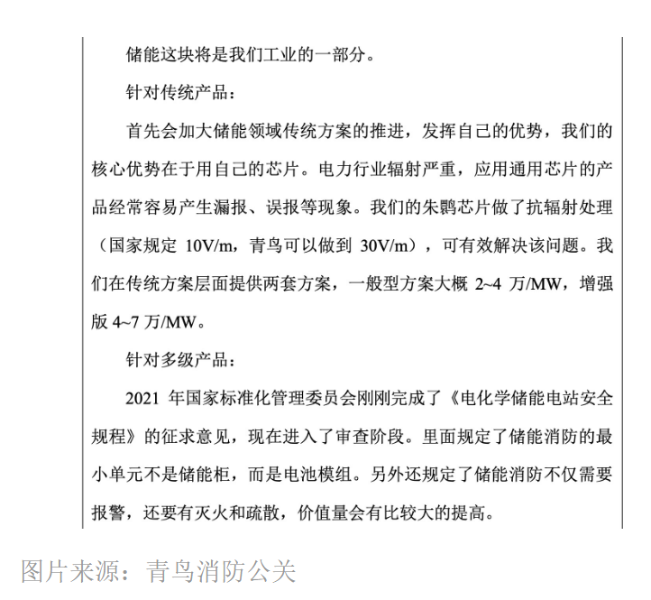 12月23日,青鳥消防(002960.SZ)在投資者調(diào)研活動上,回答的一大半問題都和儲能相關(guān),并且披露了公司在儲能消防領(lǐng)域的技術(shù)布局。
