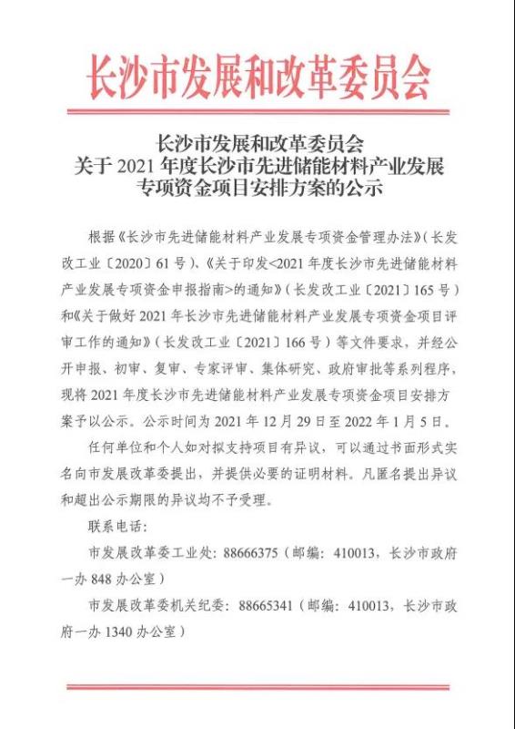 中國儲能網(wǎng)訊:12月29日,湖南省長沙市發(fā)改委發(fā)布《關(guān)于2021年度長沙市先進儲能材料產(chǎn)業(yè)發(fā)展專項資金項目安排方案的公示》,項目分引進重大項目、產(chǎn)業(yè)項目實施、公共服務(wù)平臺搭建、行業(yè)組織交流四大類,一共11個項目。建議支持金額2266萬元。公示時間為12月19日至2022年1月5日。
