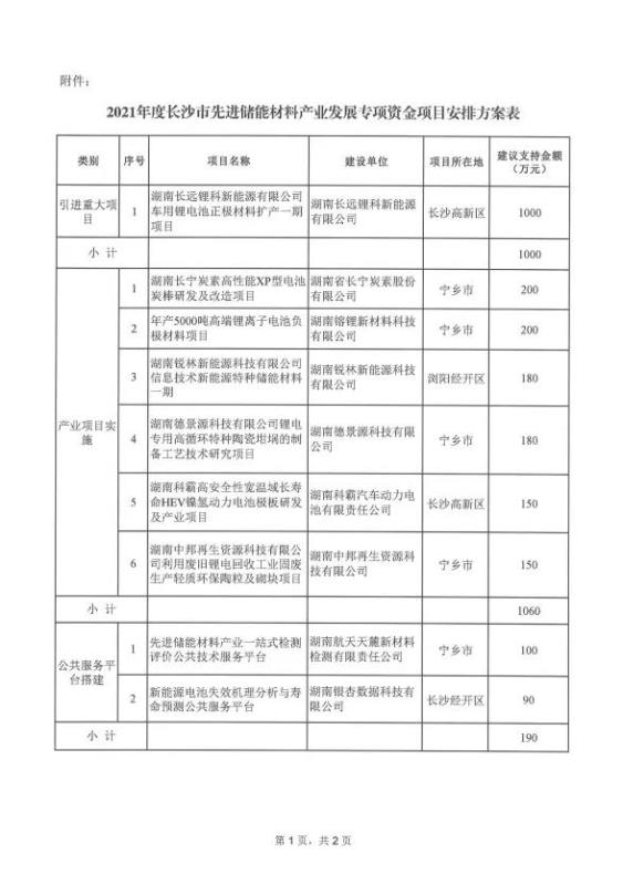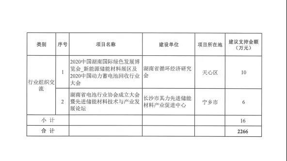 湖南長遠(yuǎn)鋰科新能源有限公司、湖南省長寧炭素股份有限公司、 湖南镕鋰新材料科技有限公司、湖南銳林新能源科技有限公司、 湖南德景源科技有限公司、湖南科霸汽車動力電池有限責(zé)任公司、湖南省循環(huán)經(jīng)濟研究會等11家企業(yè)獲得支持資金。