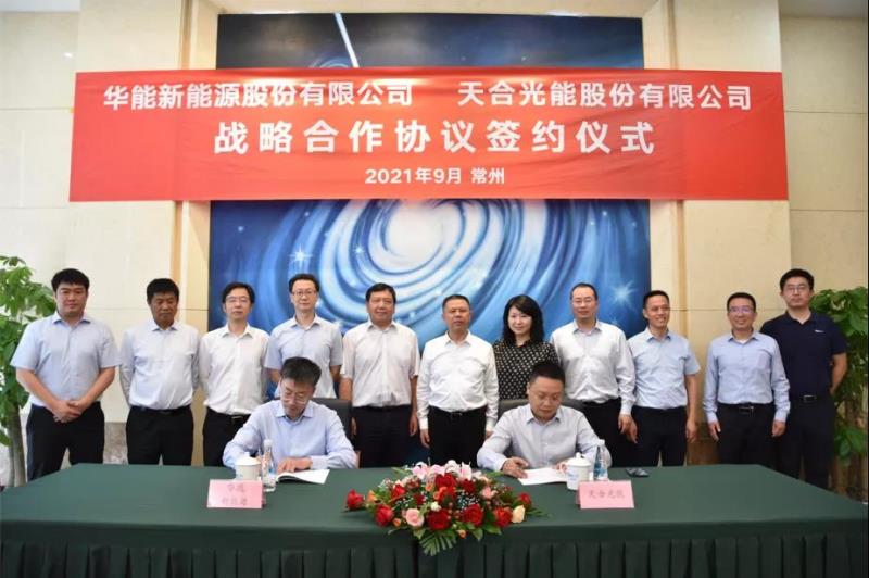 2021年9月16日,王力軍董事長率華能新能源總部及區(qū)域公司相關(guān)領(lǐng)導(dǎo)一行到訪常州,考察天合光能總部及戶用分布式樣板項(xiàng)目,并與天合光能高紀(jì)凡董事長暢談雙方未來合作。期間,在雙方董事長見證下,天合智慧分布式能源有限公司與華能新能源股份有限公司簽署戰(zhàn)略合作協(xié)議。雙方約定在分布式光伏領(lǐng)域深化業(yè)務(wù)合作,打造可持續(xù)發(fā)展戰(zhàn)略伙伴關(guān)系。