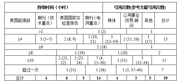 表1提供了對39份報告和文獻(xiàn)綜述的總結(jié),這些文件用數(shù)值定義了長時儲能持續(xù)時間,通常以小時表示。在這時排除了一些別技術(shù)開發(fā)商發(fā)布或推廣的定義,沒有包含詳細(xì)討論長時儲能系統(tǒng)(LDES)但沒有明確定義持續(xù)時間的文件。
