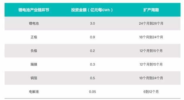 圖8:鋰電池產(chǎn)業(yè)鏈的投資金額和擴(kuò)產(chǎn)周期