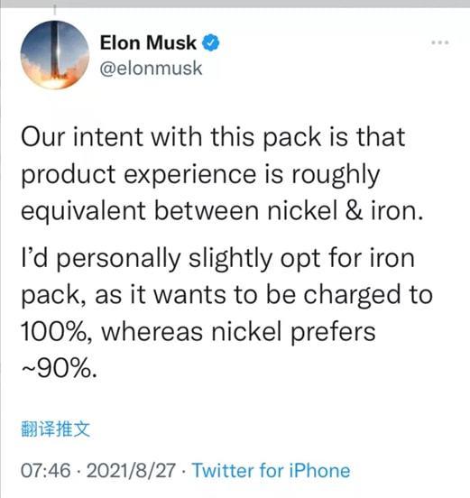 2020年年中,特斯拉開始在國產(chǎn)車型上正式使用寧德時代的磷酸鐵鋰電池。之后,馬斯克也曾在各種場合為磷酸鐵鋰帶貨。作為新能源汽車風(fēng)向標(biāo)企業(yè),特斯拉開始使用磷酸鐵鋰電池也讓外界徹底改變對磷酸鐵鋰電池的態(tài)度。