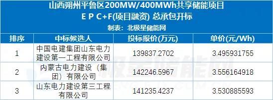 中國儲能網(wǎng)訊:1月5日,山西朔州又一大規(guī)模儲能項(xiàng)目開標(biāo)!第一中標(biāo)候選人中國電建山東電建第一工程公司、其報價最低為3.5元/Wh。