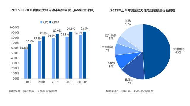 2020年以來,以寧德時代、比亞迪、中航鋰電、國軒高科等為代表的領軍企業(yè)加快高鎳低鈷電池、硅負極材料電池、“永不起火”電池等新技術研制,競爭優(yōu)勢明顯。2020年,我國動力電池CR5和CR10分別達到82.2%和91.8%,相較2019年分別提升3.1%、3.9%。未來,隨著頭部企業(yè)技術創(chuàng)新、產品擴產,我國動力電池市場集中度有望進一步提升。