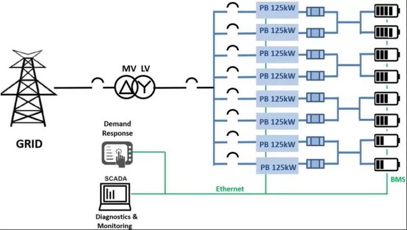 如果運(yùn)營商想同時(shí)提供能源和功率服務(wù),PowerBRiC系統(tǒng)可以通過125kVA模塊數(shù)量調(diào)整大小,實(shí)現(xiàn)更精確地為特定應(yīng)用提供最佳的功率能量比率。