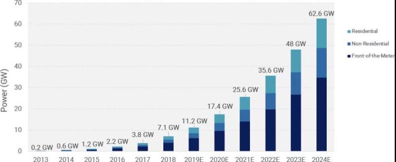 據(jù)伍德·麥肯齊電力和可再生能源公司的數(shù)據(jù),電網(wǎng)規(guī)模的儲(chǔ)能安裝預(yù)計(jì)在未來6年將增長13倍,從2018年的累計(jì)7GW/12GWh增加到2024年的63GW/158GWh。逆變器是獨(dú)立儲(chǔ)能系統(tǒng)和混合儲(chǔ)能系統(tǒng)所提供智慧服務(wù)中的一個(gè)關(guān)鍵部分,這使它們成為儲(chǔ)能項(xiàng)目中需要考慮的最重要因素之一。
