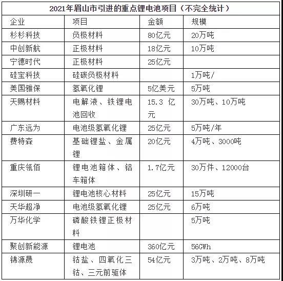 電池中國不完全統(tǒng)計了2021年眉山市引進的另一些重點項目: