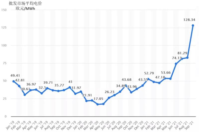 二是電價(jià)隨成本迅速攀升。2021年年初以來,德國的電力批發(fā)價(jià)格上漲了60%以上,2021年7月和8月份電價(jià)不斷飆升至歷史新高,9月中旬歐洲能源交易所的德國電價(jià)首次達(dá)到了100歐元/兆瓦時(shí)。
