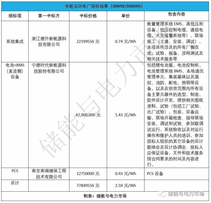 玉環(huán)電廠火儲聯(lián)合調(diào)頻項目,系統(tǒng)集成中標(biāo)價格2220萬元,電池直流側(cè)設(shè)備中標(biāo)價格4290萬元,PCS設(shè)備中標(biāo)價格1275萬元,折合總系統(tǒng)造價約2.59元/Wh。