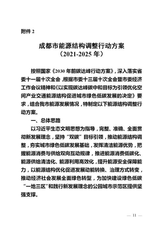 《成都市能源結構調整行動方案(2021-2025年)》