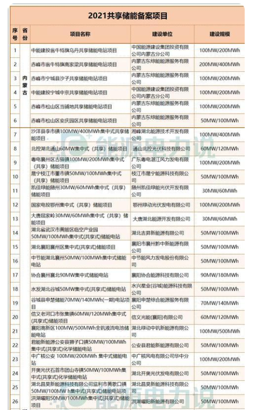 據(jù)公開信息統(tǒng)計,截止目前內(nèi)蒙古、湖北、山西、寧夏、甘肅、河北、山東、陜西、河南等省均有共享儲能備案項目,據(jù)不完全統(tǒng)計,2021年備案的共享儲能項目達85個,總建設規(guī)模超12GW/24GWh。