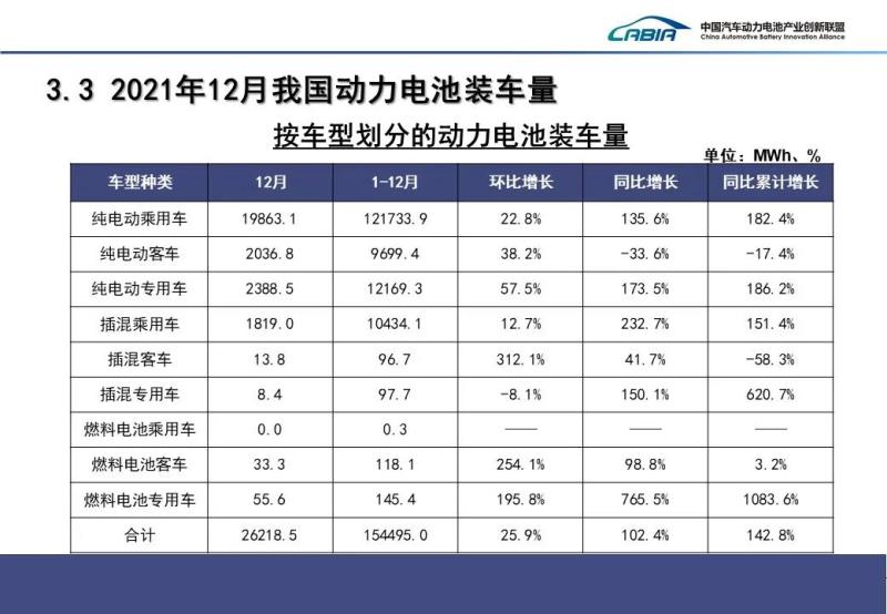 中國儲能網(wǎng)訊:日前,中國汽車動力電池產(chǎn)業(yè)創(chuàng)新聯(lián)盟發(fā)布了2021年12月動力電池月度數(shù)據(jù)。