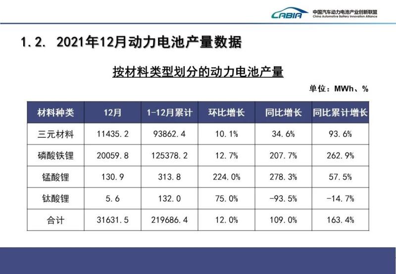 無論從單月來看還是從整個2021年來看,磷酸鐵鋰電池產(chǎn)量及增長速度都超過了三元電池。