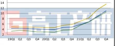2019-2021Q4中國電解液季度均價(萬元/噸)