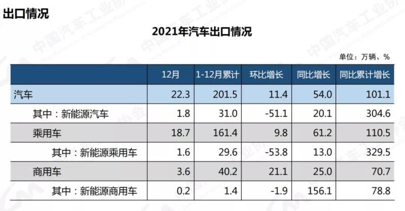 與此同時,2021年我國汽車出口累計達到201.5萬輛,其中新能源汽車出口31萬輛,同比增長達到304.6%。