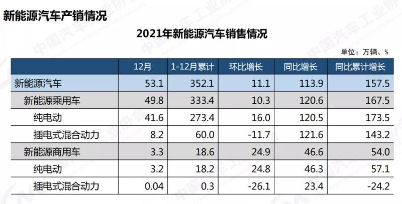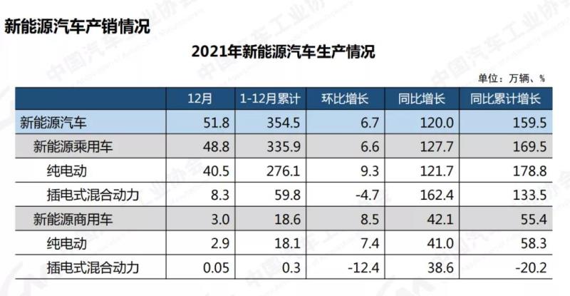 2021年,新能源汽車產(chǎn)銷分別達到354.5萬輛和352.1萬輛,同比增長均為1.6倍。在新能源汽車主要品種中,與上年同期相比,純電動和插電式混合動力汽車產(chǎn)銷均呈高速增長勢頭。