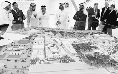1月18日,在阿聯(lián)酋首都阿布扎比舉行的世界未來能源峰會新能源及環(huán)保展覽上,參觀者觀看“馬斯達(dá)爾城”模型。2006年,阿聯(lián)酋提出“馬斯達(dá)爾行動計(jì)劃”,包括建立發(fā)展低碳經(jīng)濟(jì)體系及技術(shù)的“馬斯達(dá)爾研究院”和“馬斯達(dá)爾能源公司”,打造了一個(gè)全球性的可再生能源交流平臺(即現(xiàn)在的“世界未來能源峰會”)以及世界首個(gè)無碳城市——馬斯達(dá)爾城。