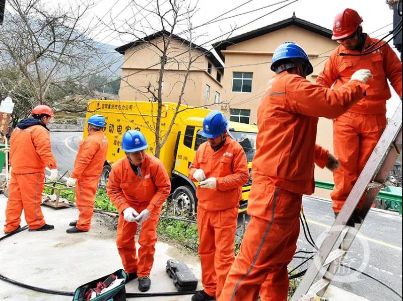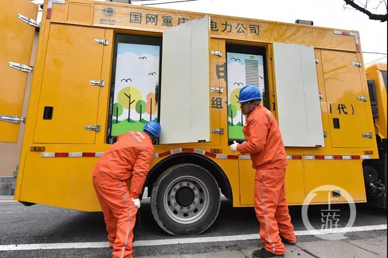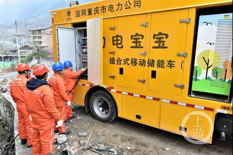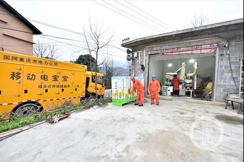 國網(wǎng)重慶市電力公司員工正將組合式移動儲能車作為電源為花田鄉(xiāng)何家?guī)r村農(nóng)戶進行電力保障。