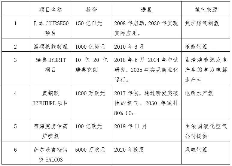 國(guó)內(nèi)方面,20世紀(jì)60年代,本鋼高爐、鞍鋼9號(hào)高爐分別進(jìn)行了高爐焦?fàn)t煤氣噴吹試驗(yàn)。多年來(lái)氫冶金進(jìn)展緩慢。近年,各大鋼鐵企業(yè)提出氫冶金規(guī)劃并積極籌建氫冶金氣基豎爐生產(chǎn)線或示范工程。2021年5月,河鋼集團(tuán)在河北張家口啟動(dòng)建設(shè)“全球首例富氫氣體直接還原示范工程”,從改變能源結(jié)構(gòu)入手,推動(dòng)鋼鐵冶金工藝變革。2021年第三季度,中國(guó)寶武將在湛江鋼鐵開工建設(shè)(一期)1座百萬(wàn)噸級(jí)、具備全氫工藝試驗(yàn)條件的氫基豎爐直接還原示范工程及配套設(shè)施,可按不同比例靈活使用焦?fàn)t煤氣、天然氣和氫氣。不僅龍頭企業(yè)積極發(fā)揮帶頭作用,首鋼、建龍、酒鋼、日照鋼鐵等一批鋼鐵企業(yè)也建立了低碳冶金示范項(xiàng)目。一大批低碳鋼鐵科研機(jī)構(gòu)也紛紛成立,如東北大學(xué)組建低碳鋼鐵前沿技術(shù)研究院,河鋼集團(tuán)與北京科技大學(xué)共同發(fā)起世界鋼鐵發(fā)展研究院,通過(guò)產(chǎn)學(xué)研的力量推動(dòng)中國(guó)氫冶金的發(fā)展。