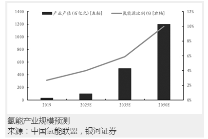 資本追逐的背后,是數(shù)萬億元規(guī)模的潛在市場空間。德邦證券指出,在2060年碳中和目標(biāo)指引下,我國未來的能源結(jié)構(gòu)將發(fā)生重大變化,并將推動投資重點(diǎn)方向往電力、電網(wǎng)改造、氫能源等主題發(fā)展。銀河證券認(rèn)為,從全球格局來看,目前各國都在加緊氫能的研發(fā)與投入。國內(nèi)來看,氫能產(chǎn)業(yè)鏈的產(chǎn)值未來有望持續(xù)增長。中國氫能聯(lián)盟預(yù)測,在2060年碳中和目標(biāo)指引下,到2050年我國氫能年需求量有望達(dá)6000萬噸。產(chǎn)業(yè)規(guī)模方面,2050年我國氫能生態(tài)系統(tǒng)潛在市場規(guī)模有望達(dá)到12萬億元。
