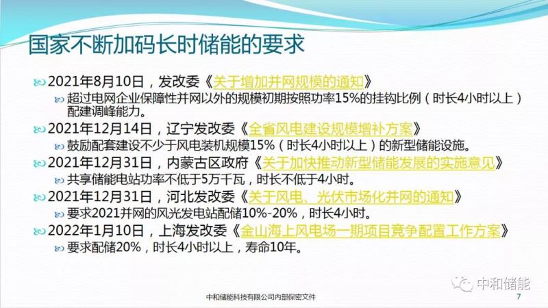 目前國內要求配置長時儲能的政策也在頻繁出臺,從國家發(fā)改委2021年8月10號的鼓勵配儲4小時以上,到今年1月10日上海發(fā)改委要求必須配備4小時以上儲能,而且附帶了配套儲能不按期投產,則降低風電并網價格的懲罰機制。隨著風光發(fā)電滲透率越來越高,相信對配儲時長的要求越來越長。