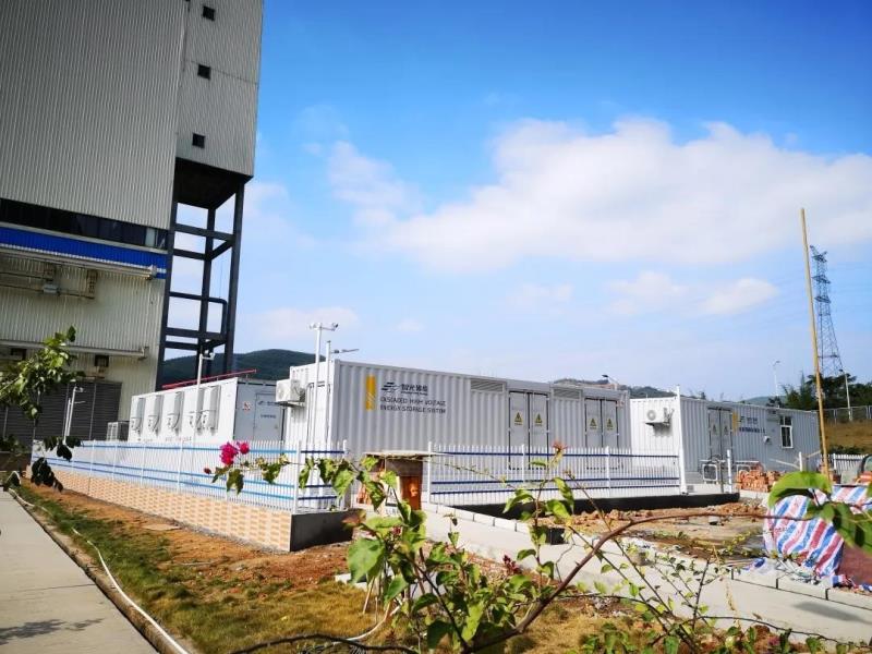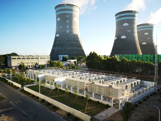 2、廣東茂名某熱電儲能調(diào)頻項目總裝機容量1150MW,2020年9月正式投運。本項目儲能建設(shè)規(guī)模為20MW/10MWh,由4套5MW/2.5MWh級聯(lián)型高壓儲能系統(tǒng)并聯(lián)而成,電池選用磷酸鐵鋰電池。