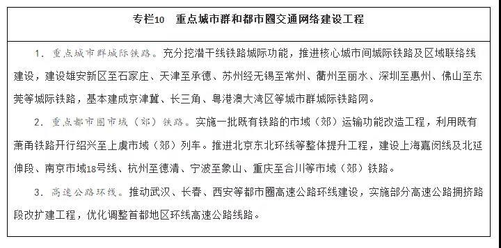 強化重點城市群城際交通建設(shè)。圍繞京津冀、長三角、粵港澳大灣區(qū)、成渝、長江中游等城市群,以軌道交通、高速公路為骨干,提升城際運輸通道功能,加強核心城市快速直連,構(gòu)建多節(jié)點、網(wǎng)絡(luò)化的城際交通網(wǎng),實現(xiàn)城市群內(nèi)主要城市間2小時通達。整體推進京津冀、長三角、粵港澳大灣區(qū)城際鐵路和市域(郊)鐵路建設(shè),有序推動成渝地區(qū)雙城經(jīng)濟圈城際鐵路和市域(郊)鐵路建設(shè),加強與高速鐵路、普速鐵路一體銜接,擴大對5萬人口以上城鎮(zhèn)的有效覆蓋。