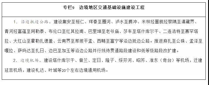 服務(wù)沿邊城鎮(zhèn)體系建設(shè),以公路、機場為重點,大力改善邊境地區(qū)交通出行條件,提升邊境城鎮(zhèn)人口集聚能力。統(tǒng)籌推進邊境地區(qū)國省干線公路、農(nóng)村公路等建設(shè),全面完善國道干線主骨架,推進沿邊公路并行線建設(shè)和低等級公路提質(zhì)改造,加快抵邊公路建設(shè),盡快形成層次清晰、結(jié)構(gòu)合理的沿邊公路網(wǎng)。穩(wěn)步推進邊境地區(qū)機場建設(shè),構(gòu)建多層級航空網(wǎng),擴大航空運輸服務(wù)覆蓋面。補強同江、二連浩特、阿拉山口、霍爾果斯、瑞麗、磨憨等口岸后方鐵路通道能力。加強抵邊自然村郵政設(shè)施建設(shè),實現(xiàn)郵政服務(wù)普遍覆蓋。