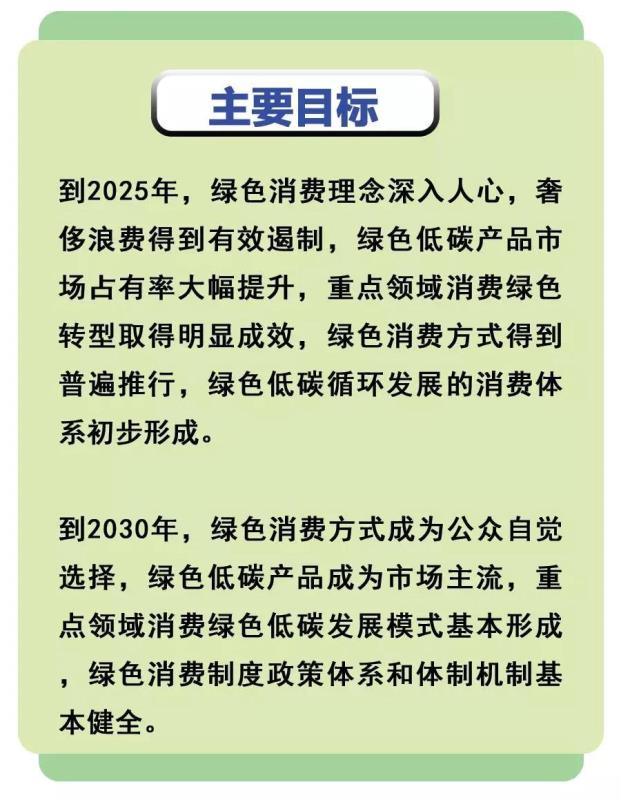 《實(shí)施方案》強(qiáng)調(diào),要大力發(fā)展綠色消費(fèi),增強(qiáng)全民節(jié)約意識(shí),反對(duì)奢侈浪費(fèi)和過(guò)度消費(fèi),擴(kuò)大綠色低碳產(chǎn)品供給和消費(fèi),完善有利于促進(jìn)綠色消費(fèi)的制度政策體系和體制機(jī)制,推進(jìn)消費(fèi)結(jié)構(gòu)綠色轉(zhuǎn)型升級(jí),加快形成簡(jiǎn)約適度、綠色低碳、文明健康的生活方式和消費(fèi)模式,為推動(dòng)高質(zhì)量發(fā)展和創(chuàng)造高品質(zhì)生活提供重要支撐。要堅(jiān)持系統(tǒng)推進(jìn)、重點(diǎn)突破、社會(huì)共治、激勵(lì)約束并舉等工作原則。明確到2025年和2030年促進(jìn)綠色消費(fèi)的主要目標(biāo)。