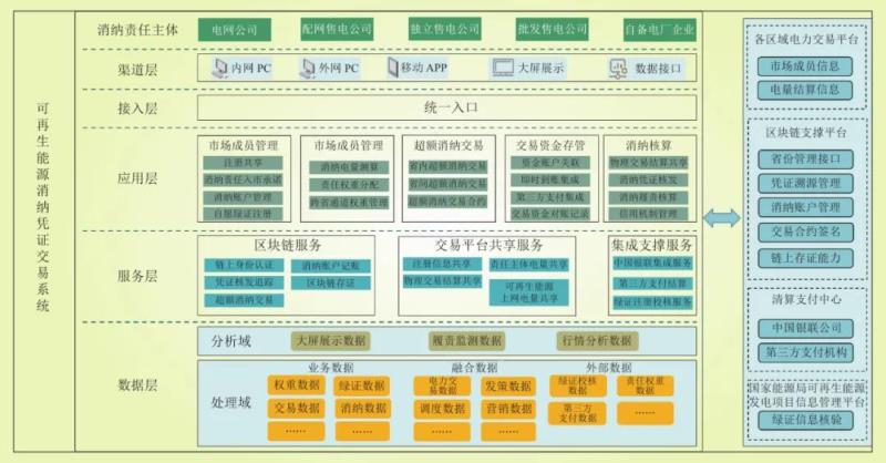 圖6 可再生能源消納憑證交易系統(tǒng)應(yīng)用架構(gòu)