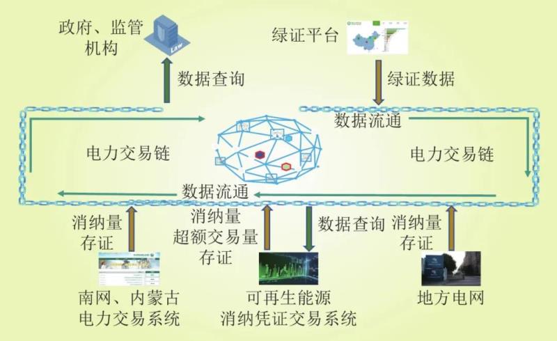 設(shè)計(jì)基于區(qū)塊鏈的可再生能源消納憑證交易系統(tǒng),能夠?yàn)槟茉串a(chǎn)品建立精確可靠的身份信息,從而可以降低交易中產(chǎn)品和企業(yè)的征信成本。區(qū)塊鏈的防篡改特性,可實(shí)現(xiàn)可再生能源消納量記賬共識(shí)互信,賬目真實(shí)、可信、不可抵賴,特別對(duì)于地方電網(wǎng)、增量配網(wǎng),電量信息無(wú)法采集,通過(guò)區(qū)塊鏈實(shí)現(xiàn)數(shù)據(jù)確權(quán);區(qū)塊鏈的可追溯特性,可實(shí)現(xiàn)可再生能源消納電量全生命周期溯源記錄,一方面增強(qiáng)存證的可信度,另一方面可有效防止超額消納量多次交易套利現(xiàn)象發(fā)生;區(qū)塊鏈的共享特性,可實(shí)現(xiàn)內(nèi)外部多個(gè)系統(tǒng)間數(shù)據(jù)可靠高效交互,包括國(guó)網(wǎng)、南網(wǎng)、蒙西電力交易平臺(tái)與權(quán)重系統(tǒng),綠證平臺(tái)與權(quán)重系統(tǒng)等;區(qū)塊鏈的透明性特性,可高效支撐有關(guān)政府主管部門、監(jiān)管機(jī)構(gòu)動(dòng)態(tài)監(jiān)測(cè)監(jiān)管可再生能源消納與交易開展情況。