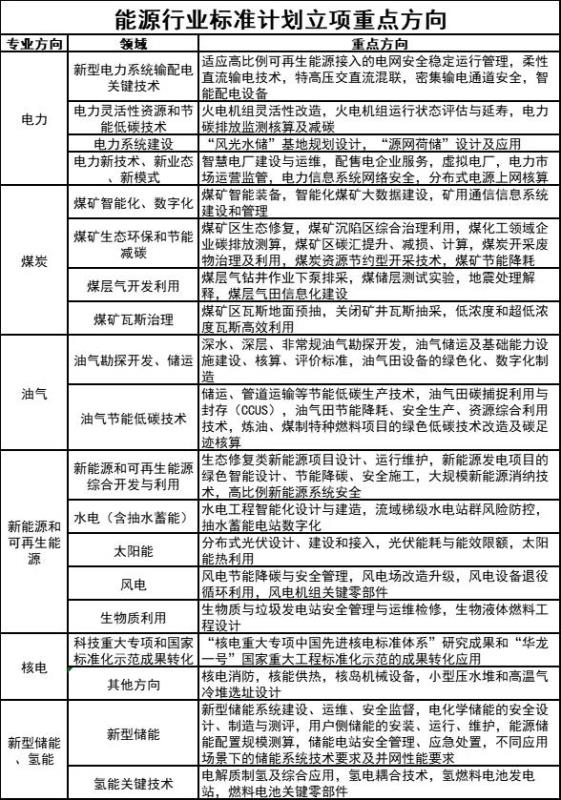 附件:能源行業(yè)標(biāo)準(zhǔn)計(jì)劃立項(xiàng)重點(diǎn)方向