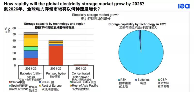 在系統(tǒng)靈活性需求的推動(dòng)下,全球存儲(chǔ)容量擴(kuò)大了56%。由于報(bào)酬計(jì)劃和長期目標(biāo),中國在所有技術(shù)的擴(kuò)張中占主導(dǎo)地位。抽水蓄能電站(PSH)仍然是存儲(chǔ)能力的最大來源。