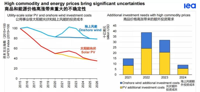 太陽能光伏發(fā)電站和風(fēng)力發(fā)電站的較高價(jià)格對(duì)預(yù)期設(shè)備價(jià)格會(huì)持續(xù)下降的贏得競爭性拍賣的開發(fā)商構(gòu)成了特別的挑戰(zhàn)。如果商品價(jià)格在2022年之前一直居高不下,那么太陽能三年和風(fēng)能五年的成本降低就會(huì)被抹去。增加的成本將需要超過1000億美元的額外投資來安裝相同數(shù)量的容量。 這相當(dāng)于將今天的全球可再生能源發(fā)電能力的年度投資增加約1/3。