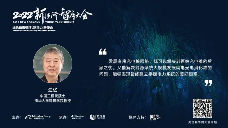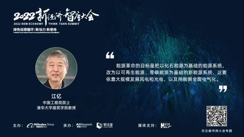 江億當(dāng)天參加由阿里巴巴集團(tuán)舉辦的“2022新經(jīng)濟(jì)智庫(kù)大會(huì)”,并作了“構(gòu)建新能源泛在充電新網(wǎng)絡(luò)”主題分享。他表示,能源革命的目標(biāo)是把以化石能源為基礎(chǔ)的能源系統(tǒng),改為以可再生能源、零碳能源為基礎(chǔ)的新能源系統(tǒng),這要依靠大規(guī)模發(fā)展風(fēng)電和光電,以及用能側(cè)全面電氣化。